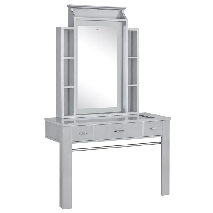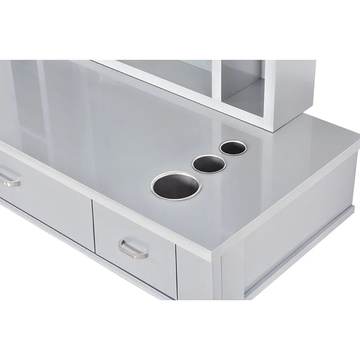 Introduce premium quality and elegant appeal to your workspace with the Kapuka Barber Station. Designed for both functionality and high style, this hair stylist station is the clear choice for discerning barbers and stylists. The Kapuka features a spacious layout, sleek finishes, and robust storage, making it a complete salon station with mirror that keeps your area impeccably organized while enhancing the professionalism of your shop.