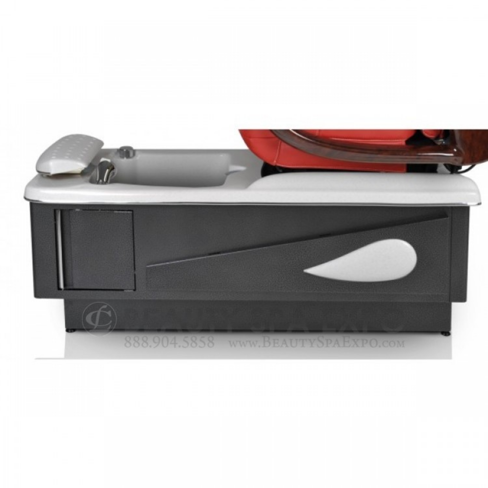 The Daytona features a fiberglass sink bowl; an adjustable waterproof, front and side drawers; fiberglass footrest; an easy-to-control, front-mounted faucet; a pullout, multifunction shower head; an embedded LED light color therapy; free matching pedicure stool.