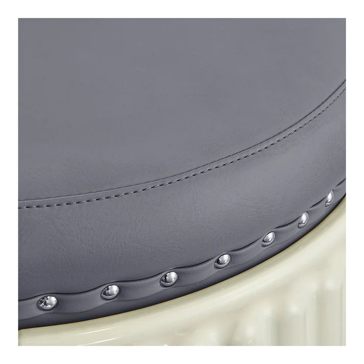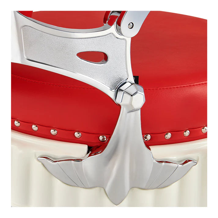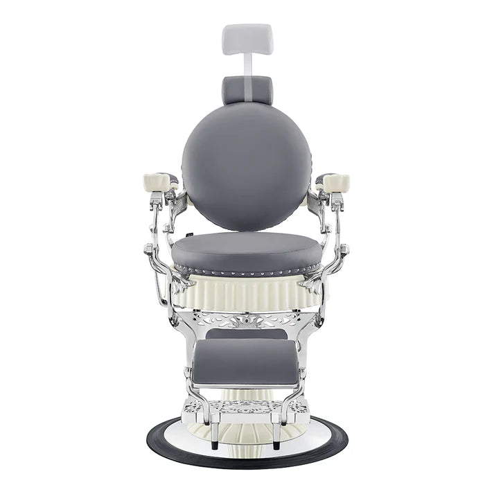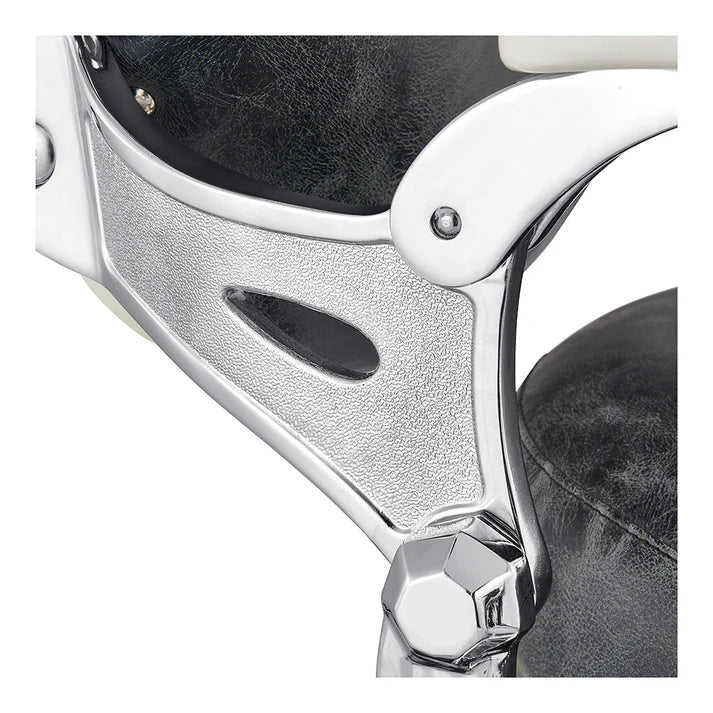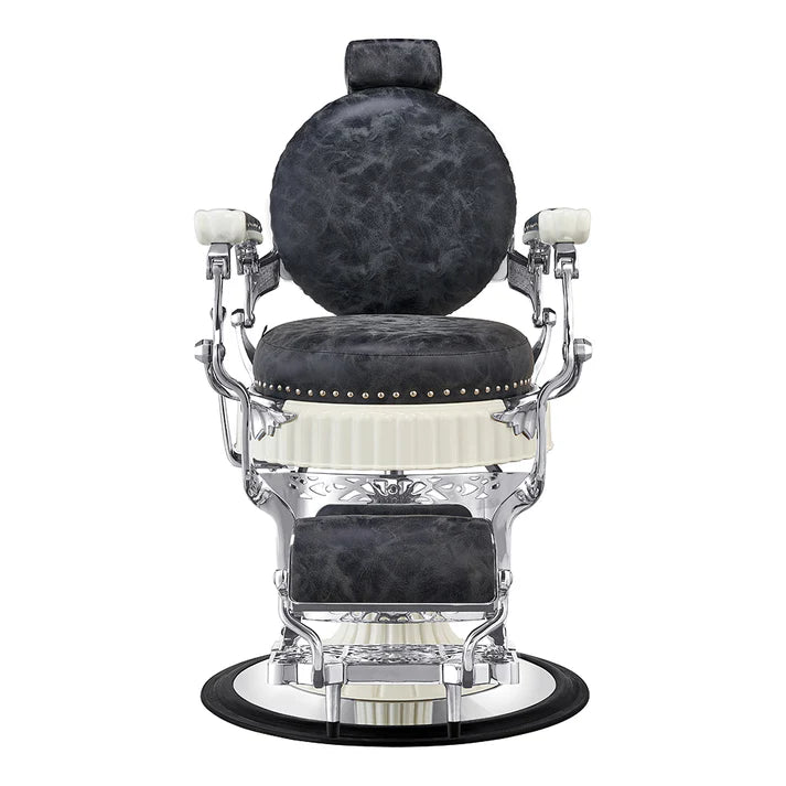 Introducing the DIR Mikado Vintage Barber Chair: The perfect blend of European modern design and classic barbershop tradition. Features a sturdy, antique-detailed chrome frame, luxurious faux leather, and a reclining back with a padded flip-up footrest—the ultimate comfort and style upgrade for your business.