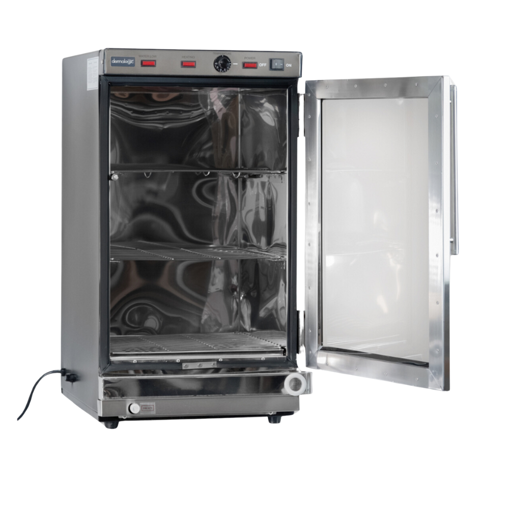 Experience the luxury and convenience of our Dermalogic Towel Steamer 122 - the perfect upgrade from traditional towel steamers. Its sleek, modern all-stainless steel design, complete with a glass door, will add a touch of sophistication to your salon.