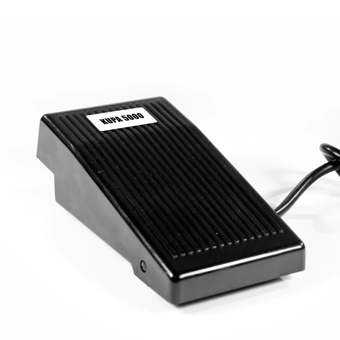The KP-5000 Foot Control pedal adapts to the MANI-PRO KP-5000 Control Box with the range of 0-30,000 RPMs. The 6" cord connects to the outlet on the back of the Electric File and automatically detects the Foot Control pedal and overrides the variable speed dial.